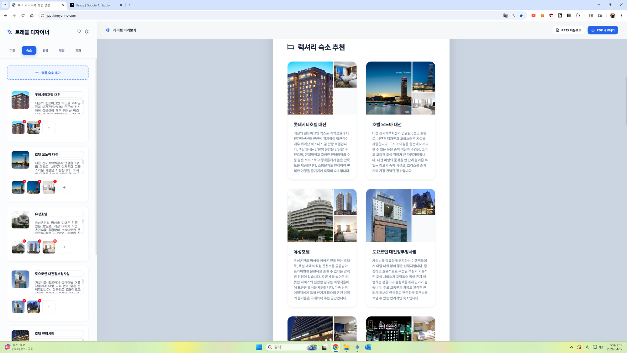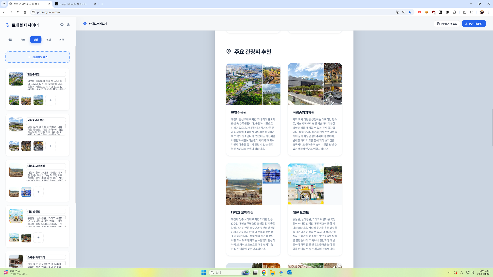 - 프리미엄 투어 기획: 단순한 텍스트 위주의 일정이 아닌, 시각적으로 압도적인 고퀄리티 자료를 만들고 싶을 때