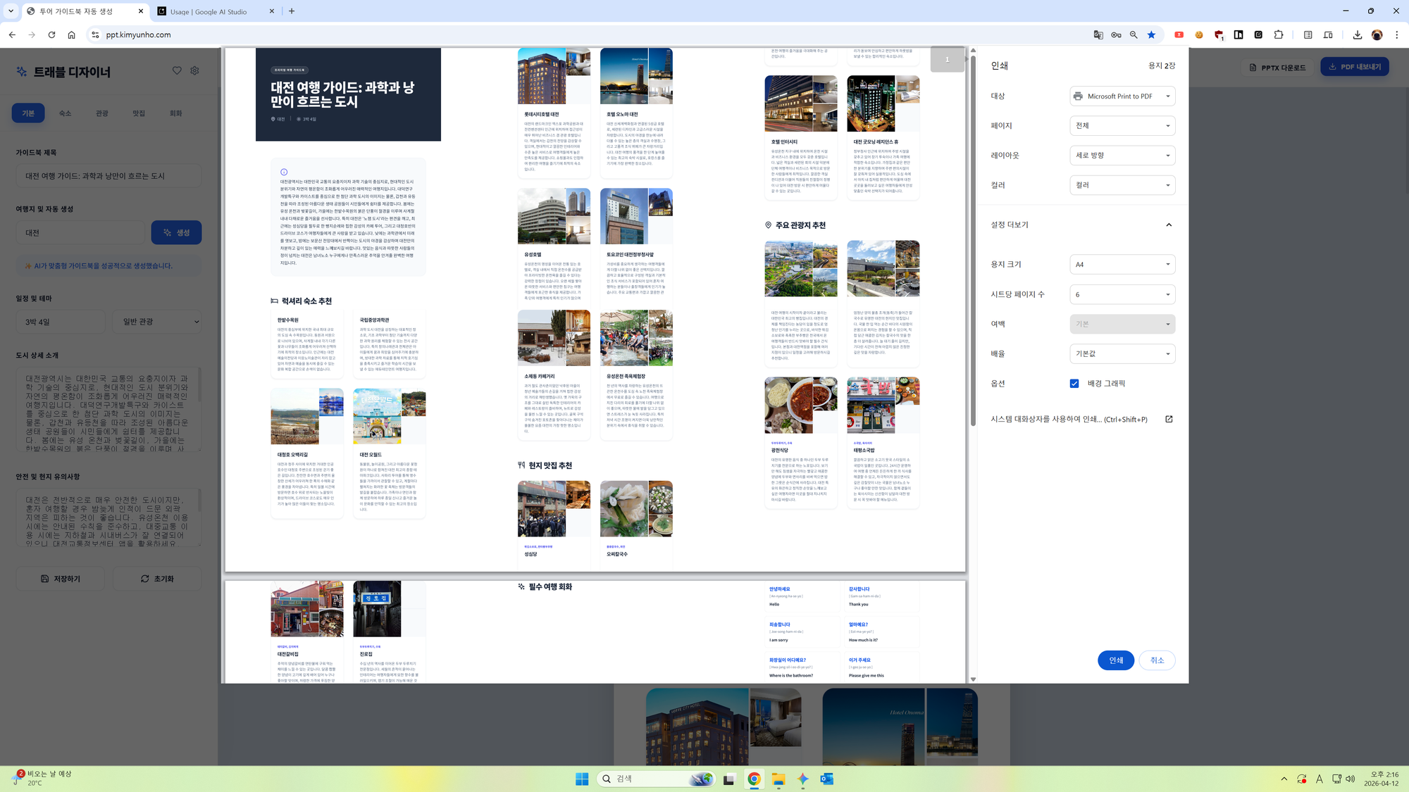 AI 기반 프리미엄 여행 가이드북 제작 도구: 트래블 디자이너